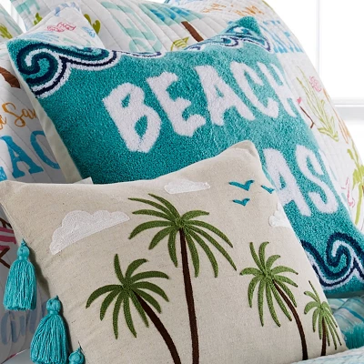 - The Beach Please decorative pillow complements the Beach Days bedding collection