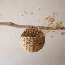 This beautiful hand-woven wall pocket is made with water hyacinth fibers that are intricately woven around a metal structure for sturdiness. The wall basket offers a great option for stylish door decor as an alternative to wreaths, as well as being a great decorative accent. Add your favorite greenery or faux flowers for a fun pop of color on your front door, or to infuse some natural boho vibes to your walls.