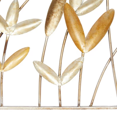 - This metal leaves wall decor showcases a cluster of swayed leaves in iridescent brown, orange, and white silver finish