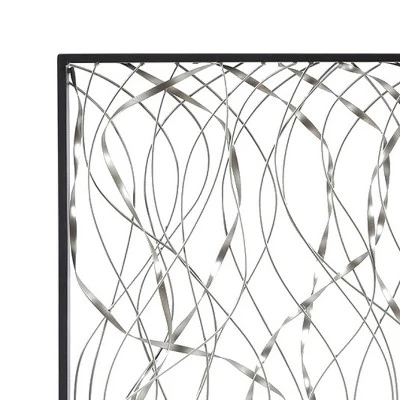 This abstract eye-catching metal sculpture is the best accessory for a wide array of home designs, especially contemporary ones. Add a unique element to your home with this gorgeous piece of wall art with its rectangular black frame and interwoven silver bands that provide its distinct design. The fluid patterns and the combination of silver and black form a genuinely intriguing metal wall decor. It pairs well with a neutral or bright wall color, and the openness of the metal wall decor allows your color palette to peek through. This item hangs horizontally with brackets attached to the back of the frame. This 46-inch-wide piece will look great above your entryway console table, in your family room above the sofa or mantle, or in your bedroom above the bed.