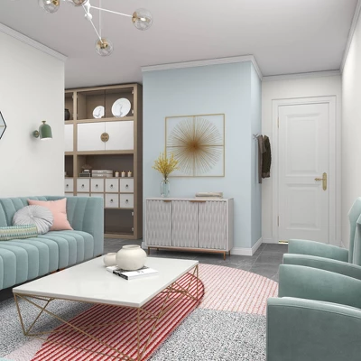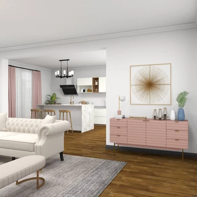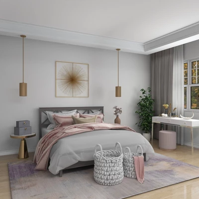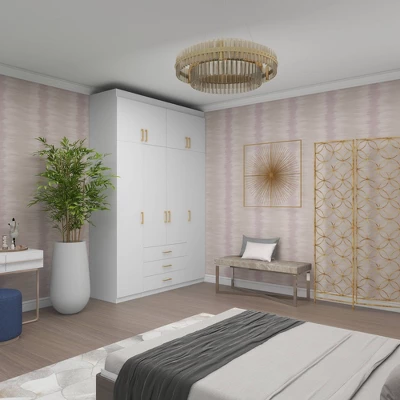 - •Framed starburst wall decor highlights a metallic gold overall finish