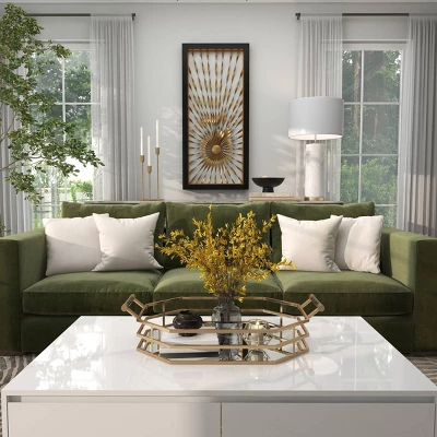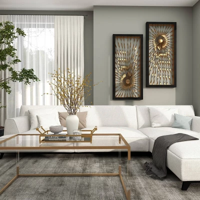 - This metal wall decoration for living room comes in black frame and gold starburst design