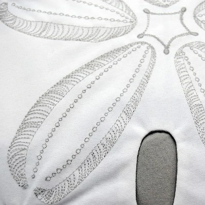 Nothing reminds us of the beach more than the crisp white of a sand dollar. Here the delicate sea creature gets an upgrade to durable outdoor Olefin performance fabric which resists stains, sun-fade and cleaning abrasion.